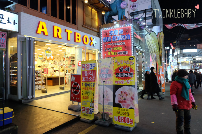 แถวนี้ก็มีร้านค้า ของกิน เครื่องสำอางให้เลือกซื้อเหมือนหลายๆ ที่ แต่จะไม่คึกคักเท่าฮงแดเนอะ