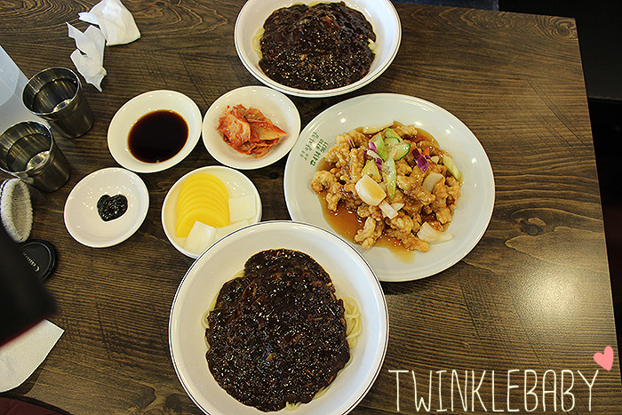 ก็สั่งเป็นจาจังมยอน (4,000 วอน) กับทังซูยุก (จานใหญ่ 15,000 วอน) ค่ะ