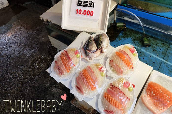 -แซลม่อนซาชิมิ (생언어 사시미 อ่านว่า แซง-ยอนอ-ซาชิมิ)