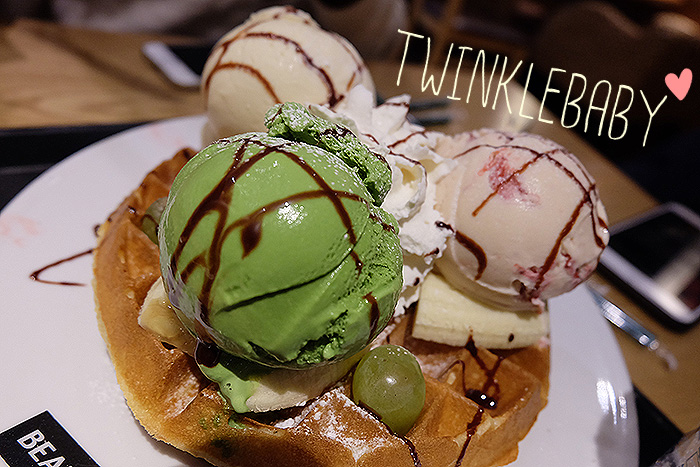 เพื่อนเราเลี้ยงของหวานค่า เป็นวาฟเฟิลสตรอเบอร์รี่ครีมสด กับวาฟเฟิลไอศกรีมฮาเก้นดาสสส