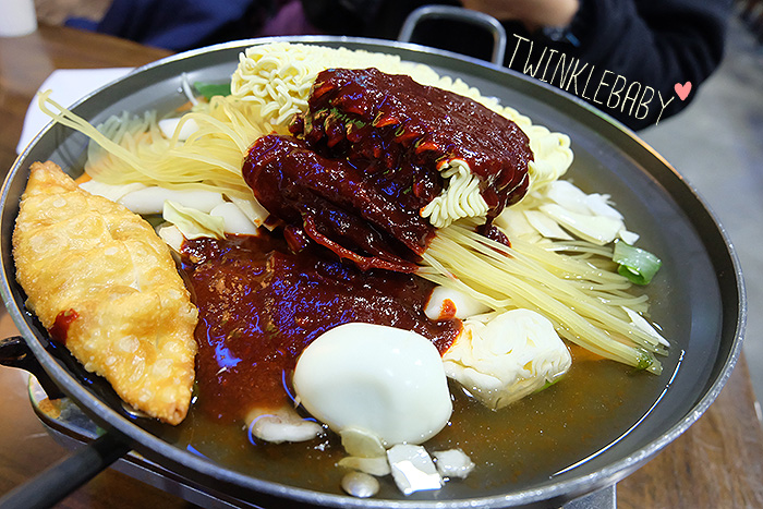 เราสั่งเป็นชุดใหญ่สุด ราคา 11,000 วอน (330 บาท) จะได้ชินดังดงต็อกบกกีหม้อนึง