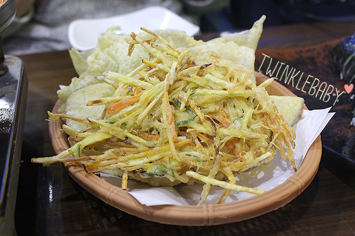 ทวีกิม (เซ็ตของทอด) หนึ่งเซ็ต แล้วก็ได้ของหวานเป็นโคกูมัน (มันหวานเคลือบน้ำตาล)